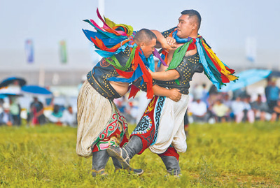 “搏克”即蒙古式摔跤,根據(jù)參賽選手?jǐn)?shù)量分為1024名搏克、512名搏克等比賽,2006年被列入第一批國家級(jí)非物質(zhì)文化遺產(chǎn)名錄。本屆搏克比賽歷時(shí)3天,賽場上,選手們身穿象征公平的開胸摔跤衣,通過摔、抱、拉、拽等技法,力圖將對(duì)手摔倒在地。
