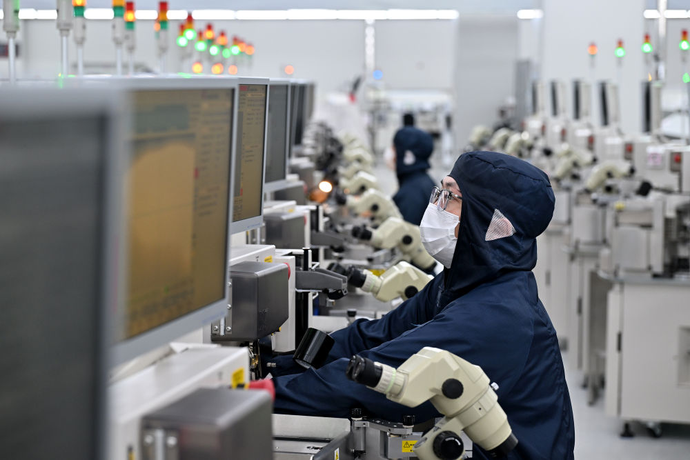 7月26日,湖南越摩先進(jìn)半導(dǎo)體有限公司工作人員調(diào)試引線(xiàn)鍵合設(shè)備。新華社記者 李鑫 攝