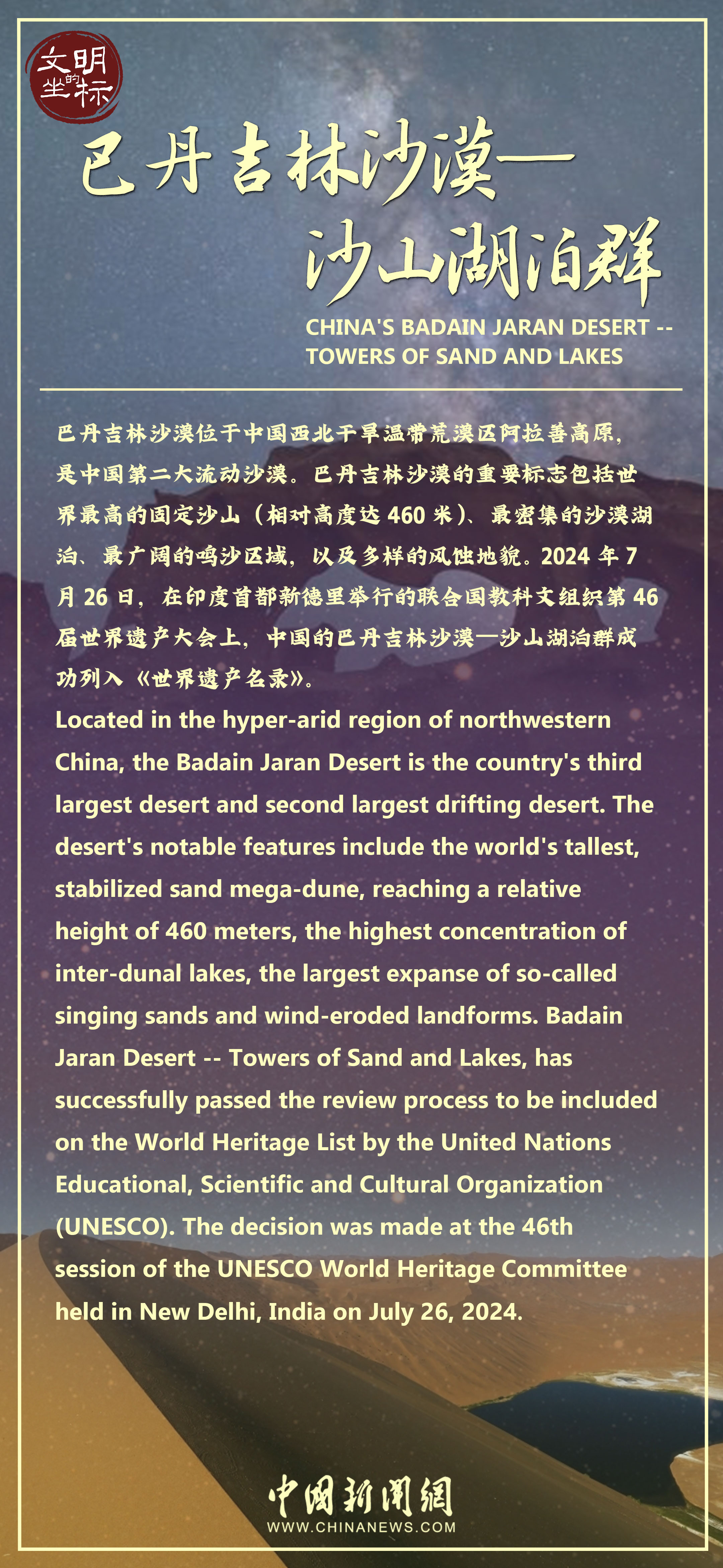 文明的坐標(biāo)丨巴丹吉林沙漠“五絕”