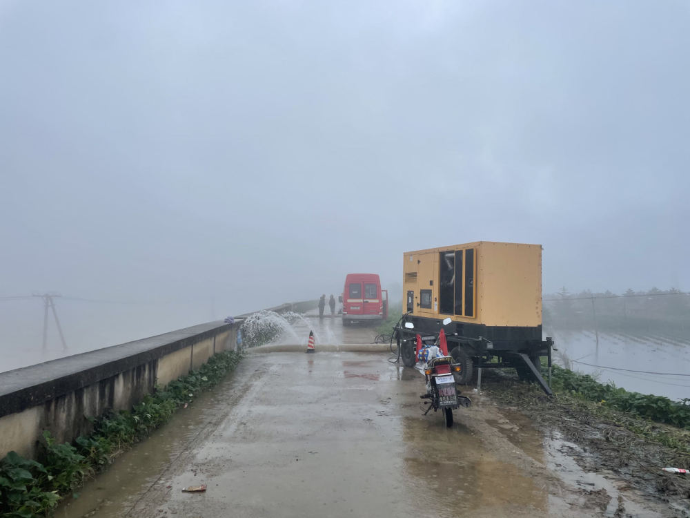 在望江村的防洪堤壩上,一臺抽水泵正在工作。新華社記者武江民 攝
