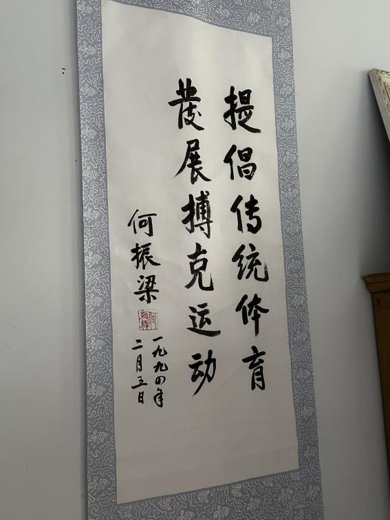李·巴特爾的家里,掛了一幅字,上面寫著“提倡傳統(tǒng)體育,發(fā)展搏克運動”。這是原中國奧委會名譽主席何振梁先生手書的。為了讓這項運動更加根深葉茂,李·巴特爾這一代人,一直想把搏克的種子播撒得更遠。