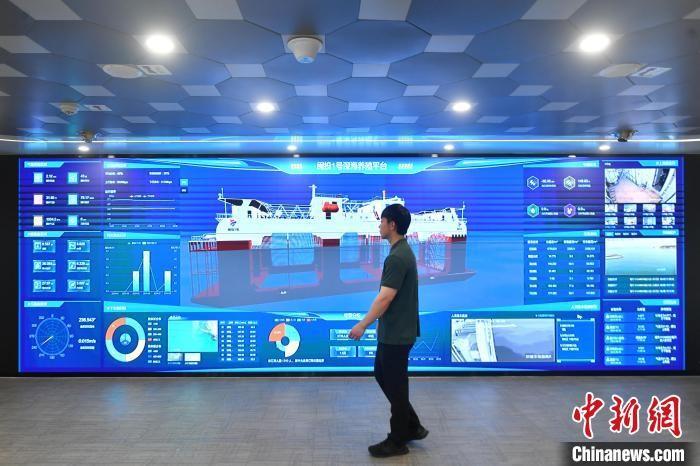 圖為工作人員正在查看“閩投1號”智慧漁業(yè)系統(tǒng)顯示屏。中新社記者 呂明 攝