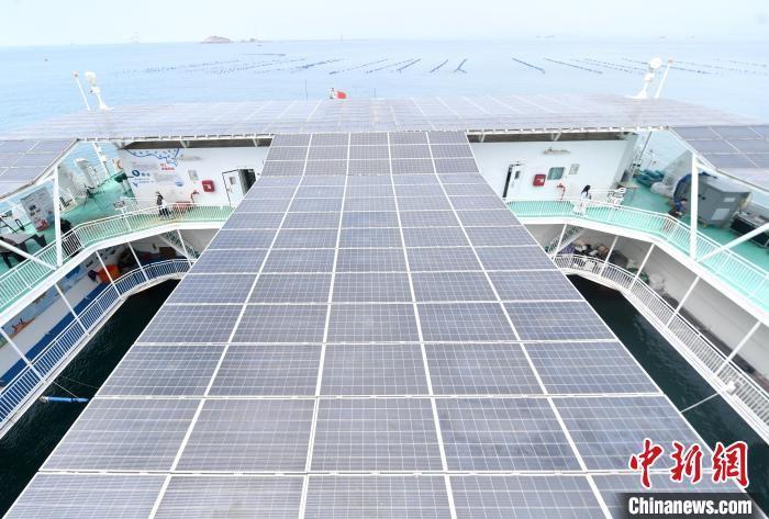 登上平臺頂層的露天平臺,由上而下鋪陳開來的巨大光伏電板引人注目。福建投資開發(fā)集團(tuán)有限公司戰(zhàn)略發(fā)展部總經(jīng)理黃慧湄介紹,“閩投1號”平臺由海洋可再生能源提供電力,搭載的光伏發(fā)電和儲能電池實(shí)現(xiàn)多能互補(bǔ)的綠色能源供電系統(tǒng),可長期穩(wěn)定地為平臺生產(chǎn)生活、休閑旅游提供能源支撐,并實(shí)現(xiàn)零碳或低碳排放。