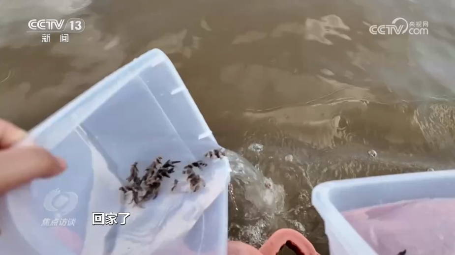 剛剛近距離接觸了江豚寶寶,孩子們又來到了長江邊,體驗增殖放流。