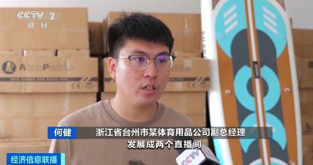 浙江省臺州市某體育用品公司副總經(jīng)理 何健:從去年的一個直播間發(fā)展成了兩個直播間。休閑板、全能板可能更受大家的歡迎,大概占50%到60%。