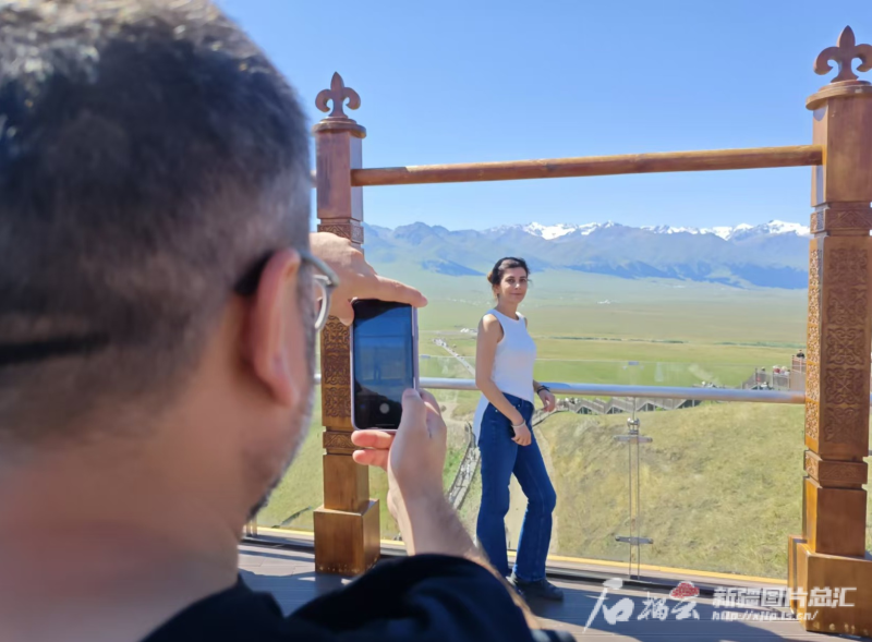 土耳其媒體人士在那拉提旅游風(fēng)景區(qū)合影留念。石榴云/新疆日?qǐng)?bào)記者 宋海波攝