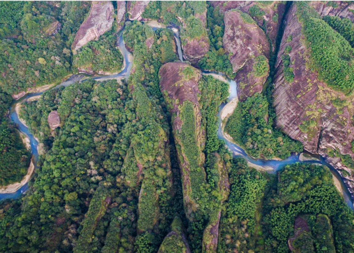 上清溪宛若一條蛟龍,盤踞在深山幽谷中,纏繞于赤壁丹崖間。(陳金寶 攝)