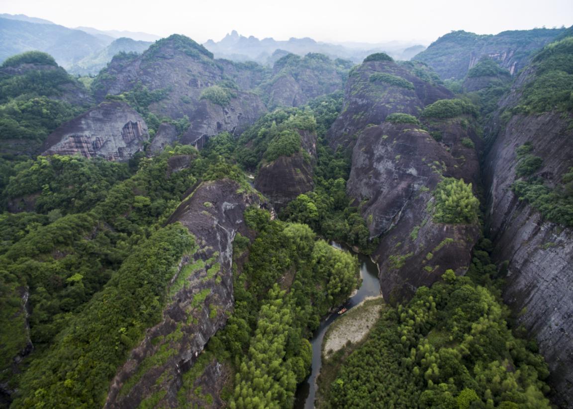 一下、一下、又一下!隨著排工在溪水里劃動竹竿,竹排動力十足地乘水漂流。隨即,排工在排上唱起韻味十足的山歌,歌聲悠揚,回響在溪水如碧的峽谷間。兩岸石壁峭立,因不同的風化程度呈現(xiàn)各異奇觀,盡顯大自然的鬼斧神工。有著“九十九曲,八十八灘”美名的上清溪位于福建省三明市泰寧縣,宛若一條蛟龍,盤踞在深山幽谷中,纏繞于赤壁丹崖間。