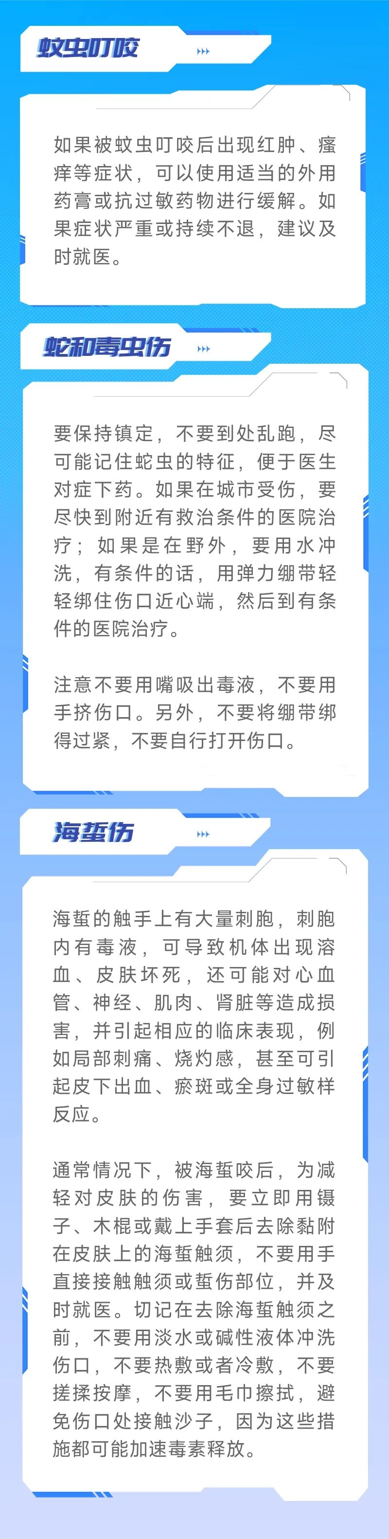 親近大自然,在森林、草原,以及海邊等地游玩,常有蚊蟲、蛇類等出沒。如因叮咬致傷,有的問題看起來不嚴(yán)重,但是會(huì)影響我們?cè)诔鲇螘r(shí)的舒適感和心情,極端情況還會(huì)危及生命。