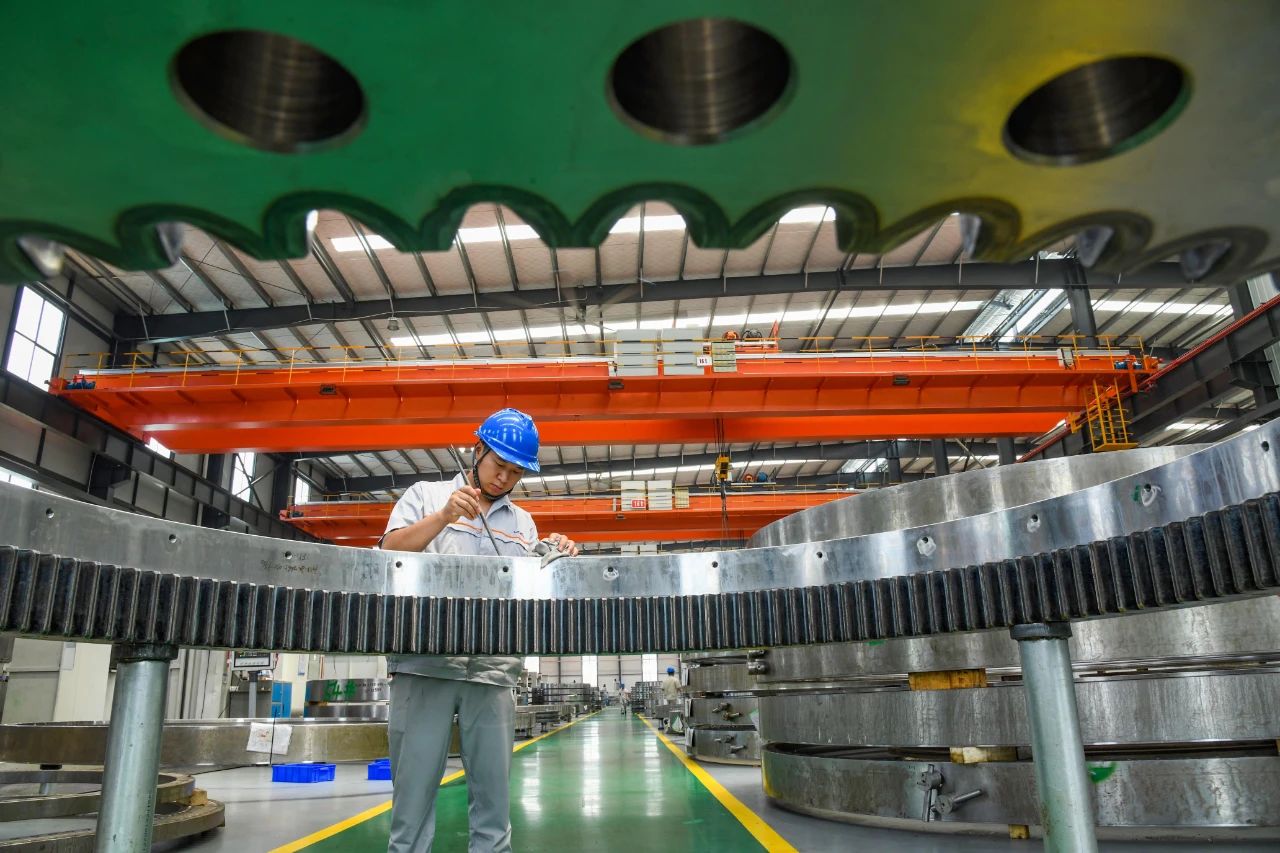 工人加工組裝風(fēng)電軸承 魯博 攝