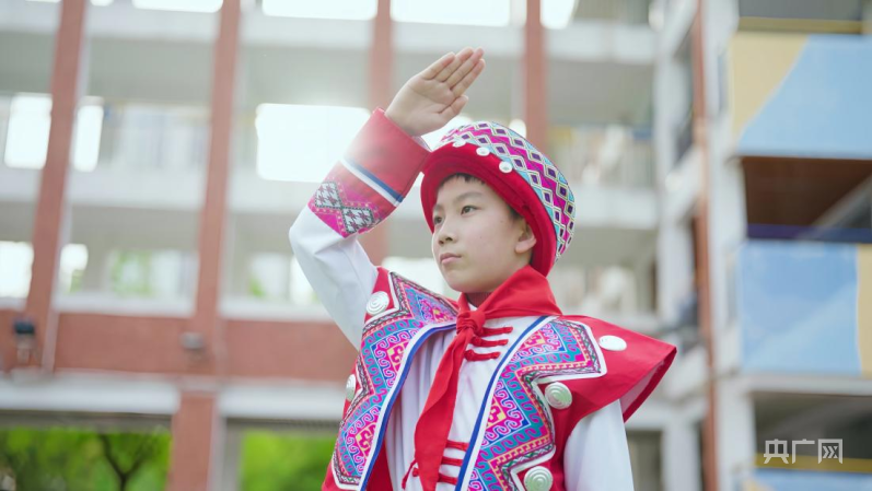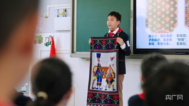 周彥博的家鄉(xiāng)位于重慶市酉陽(yáng)土家族苗族自治縣。逢年過節(jié),他總會(huì)跟隨爸爸媽媽回鄉(xiāng)看望親人。不同民族、不同文化碰撞的魅力讓周彥博深受感觸?;氐綄W(xué)校,他利用課余時(shí)間,身著特色家鄉(xiāng)服飾,與同學(xué)分享自己回鄉(xiāng)的見聞,講述民族團(tuán)結(jié)的故事。
