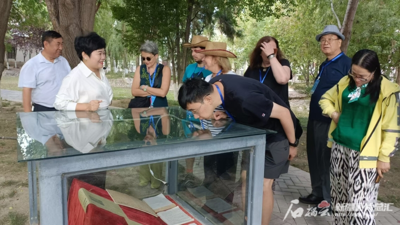 8月16日,中外漢學(xué)家、翻譯家、作家在察布查爾錫伯自治縣察布查爾報(bào)社參觀。石榴云/新疆日報(bào)記者 宋衛(wèi)國攝