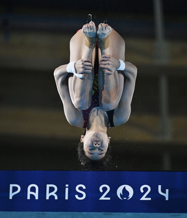 中國(guó)選手全紅嬋在巴黎奧運(yùn)會(huì)跳水女子10米跳臺(tái)決賽中(2024年8月6日攝)。新華社記者 王鵬 攝