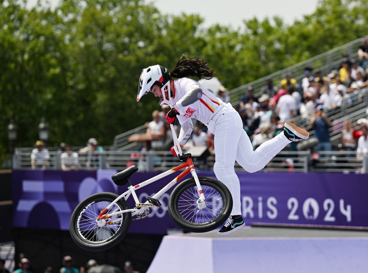 中國(guó)選手鄧雅文在巴黎奧運(yùn)會(huì)自由式小輪車女子公園賽決賽中獲得冠軍(2024年7月31日攝)。新華社記者 胡虎虎 攝