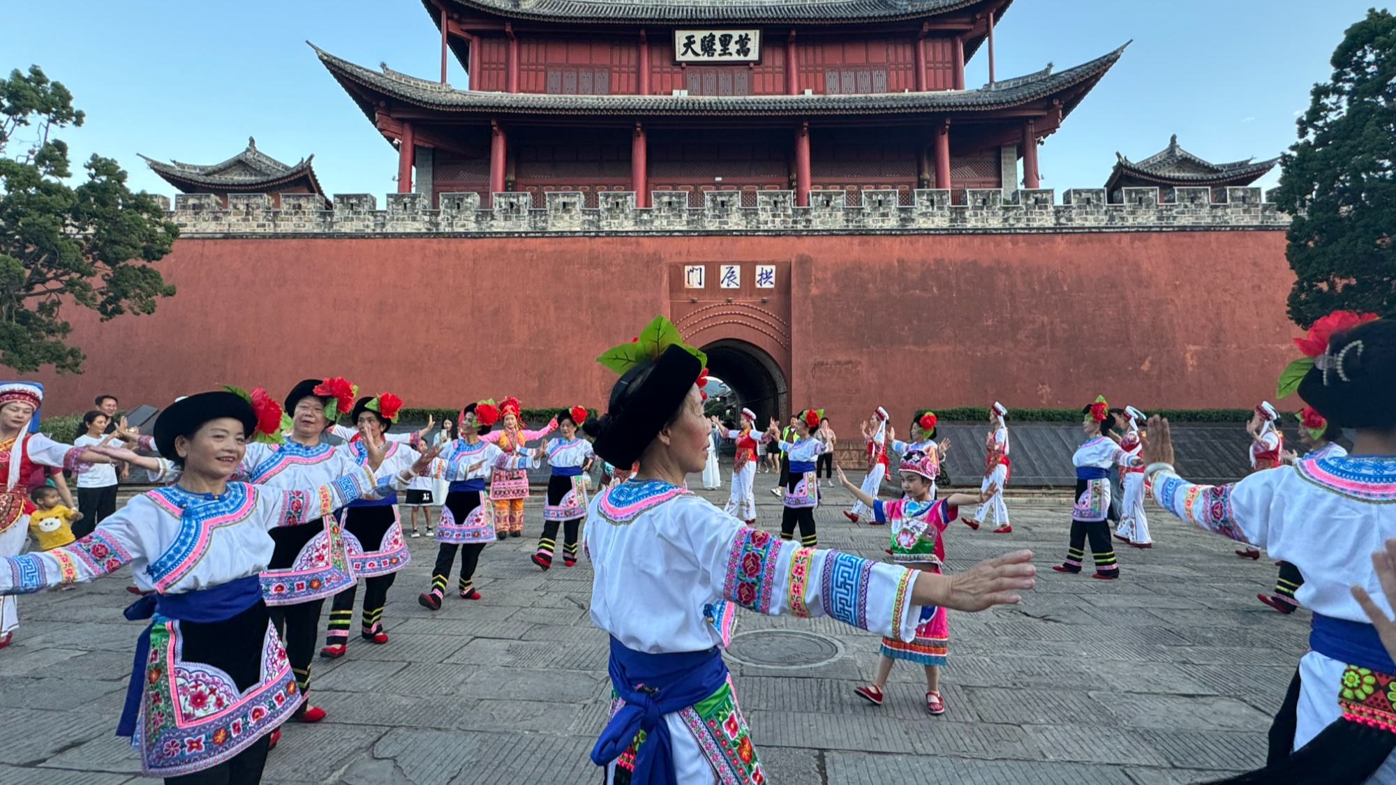 在巍山古城拱辰樓廣場,經常有“法治匯演”在這里上演。昨天,巍山的幾只民族文藝隊表演了《白族霸王鞭》舞蹈、《平安巍山》快板、《是你》聲樂、《阿克哩哈》舞蹈等節(jié)目,巧妙地將普法內容融入到其中,以歌舞傳遞法治的力量,群眾載歌載舞,現場氛圍濃烈。