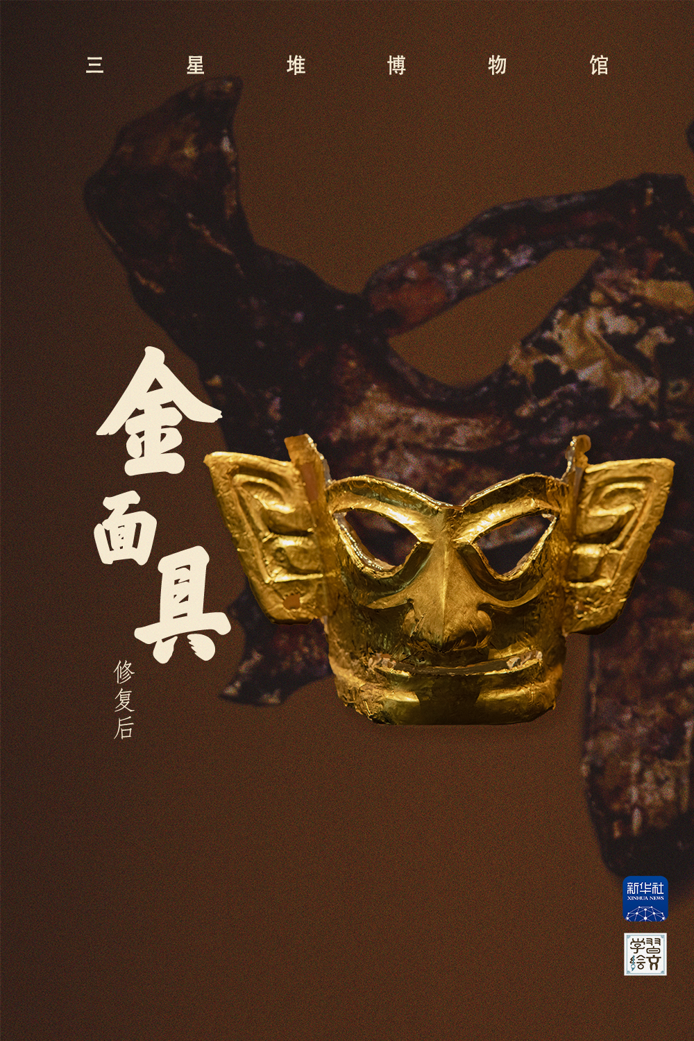 這是在三星堆博物館文物保護與修復(fù)館拍攝的修復(fù)后的金面具。