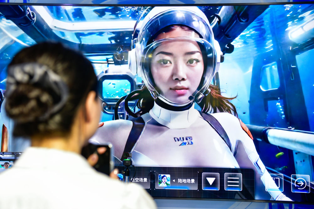 8月28日,參會(huì)人員在數(shù)博會(huì)上體驗(yàn)AIGC智影奇境。