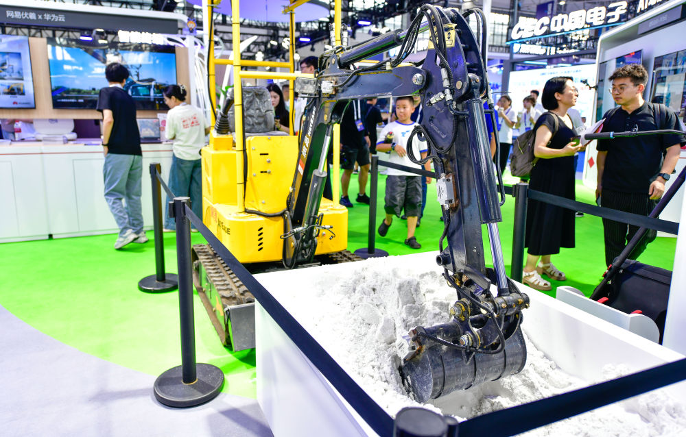 8月28日拍攝的在數(shù)博會(huì)上展出的一款智能機(jī)械設(shè)備。