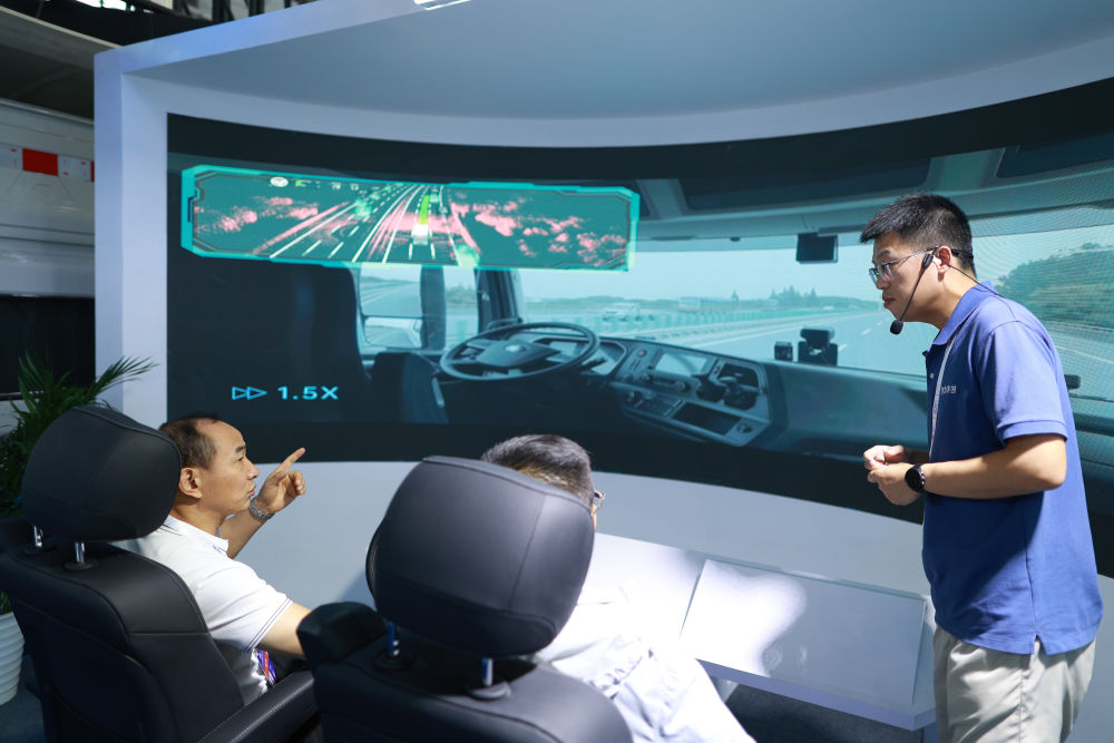 8月28日,觀展者在2024中國(guó)國(guó)際大數(shù)據(jù)產(chǎn)業(yè)博覽會(huì)現(xiàn)場(chǎng)參觀智能自動(dòng)駕駛系統(tǒng)。