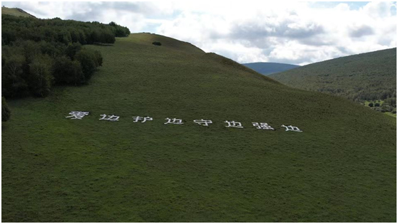 1984年7月,王玉發(fā)在阿爾山林業(yè)局林場工作期間,光榮地加入了中國共產黨。今年,王玉發(fā)迎來了加入中國共產黨的第40個年頭。為了慶祝這一特殊時刻,王玉發(fā)用1000余塊石磚堆砌出“愛民 護邊守邊 強邊”八個大字,成為山坡上一道壯觀的風景線。