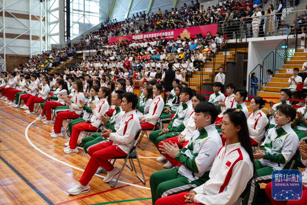 9月1日,內(nèi)地奧運(yùn)健兒代表團(tuán)在澳門奧林匹克體育中心室內(nèi)體育館與澳門青少年運(yùn)動員進(jìn)行互動交流。
