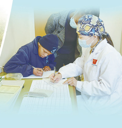 自1997年以來,中國湖北省承擔(dān)向萊索托王國派遣醫(yī)療隊的任務(wù),醫(yī)療隊隊員在當(dāng)?shù)卦\治了大量常見病、多發(fā)病,治愈了眾多疑難病癥,深受萊索托民眾歡迎與尊敬。圖為第十八批中國援萊索托醫(yī)療隊醫(yī)生王琦正在接診患者。