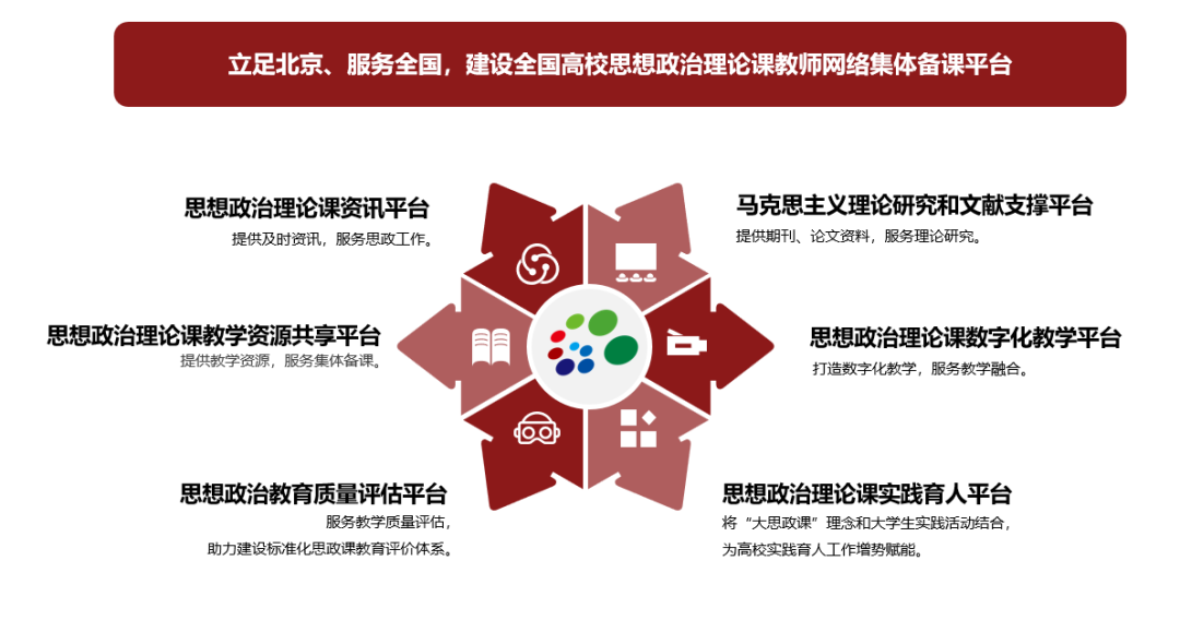 2019年的學(xué)校思想政治理論課教師座談會上,習(xí)近平總書記在談到各地各高校尤其是北京市的有益探索時(shí),專門提到了“北京高校思想政治理論課高精尖創(chuàng)新中心”。自2015年中心成立,中國人民大學(xué)全面建設(shè)面向大中小學(xué)思政課教師的一體化網(wǎng)絡(luò)資源平臺,打造服務(wù)全國大中小學(xué)思政課教師的“中央廚房”。