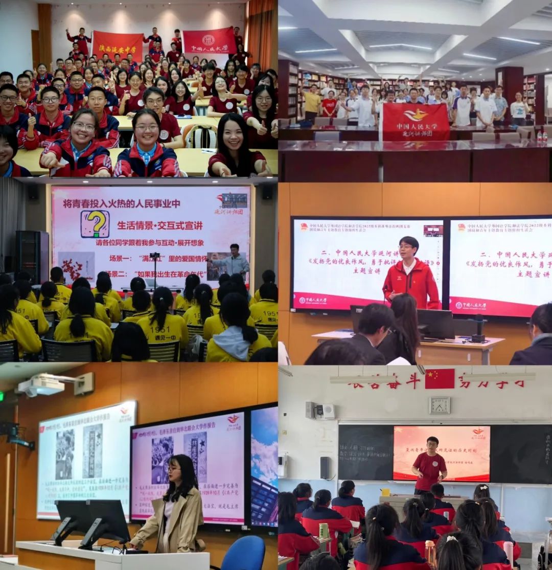 2021年7月,中國人民大學(xué)組建延河講師團(tuán),打造一支大中小學(xué)思政教育一體化的青年宣講“輕騎兵”,以青年聲音宣傳黨的奮斗歷程和偉大成就、光榮傳統(tǒng)和優(yōu)良作風(fēng)、實(shí)踐創(chuàng)造和理論創(chuàng)新,講好“黨旗下的思政課”?,F(xiàn)已推出7個(gè)專題、116門精品課程,以革命老區(qū)、脫貧摘帽地區(qū)、民族邊疆地區(qū)中小學(xué)校為重點(diǎn),開展宣講活動(dòng)600余場,覆蓋超過170萬人次、3000所學(xué)校。