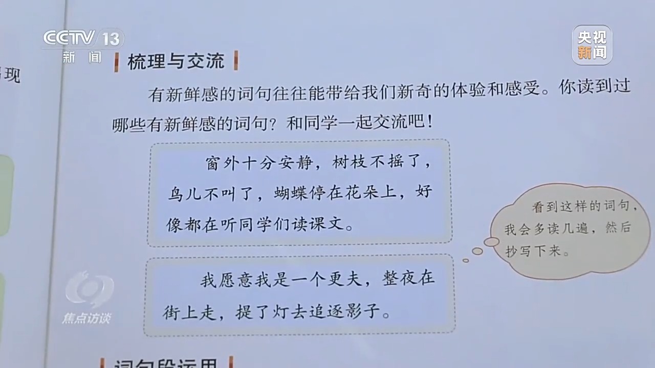 為了更好地檢驗(yàn)教材的適宜性,2023年下半年,教育部在全國(guó)范圍內(nèi)組織550多所學(xué)校、2000多名教師、10萬(wàn)多名學(xué)生開(kāi)展試教試用,組織500名中小學(xué)骨干教師和教研員進(jìn)行精細(xì)審讀。北京芳草地國(guó)際學(xué)校的語(yǔ)文教師試教了六年級(jí)下冊(cè)的第一單元。