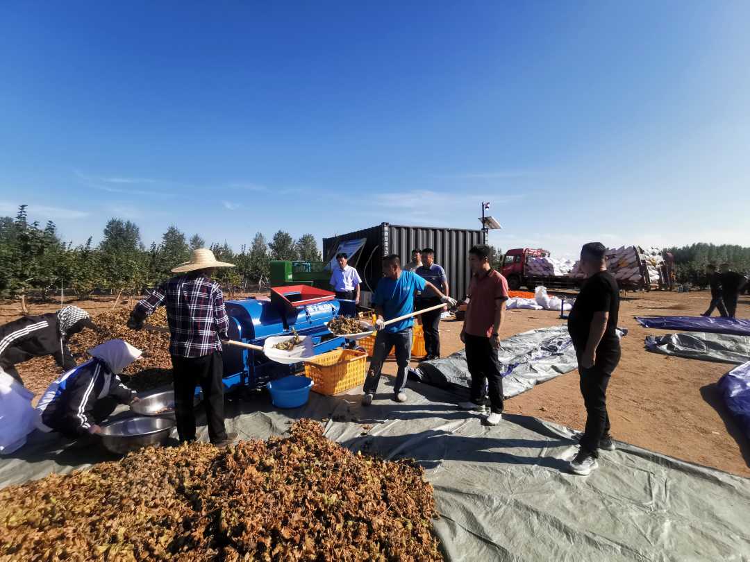 工作人員正在進行榛子脫皮。(通訊員 白玉亮攝)