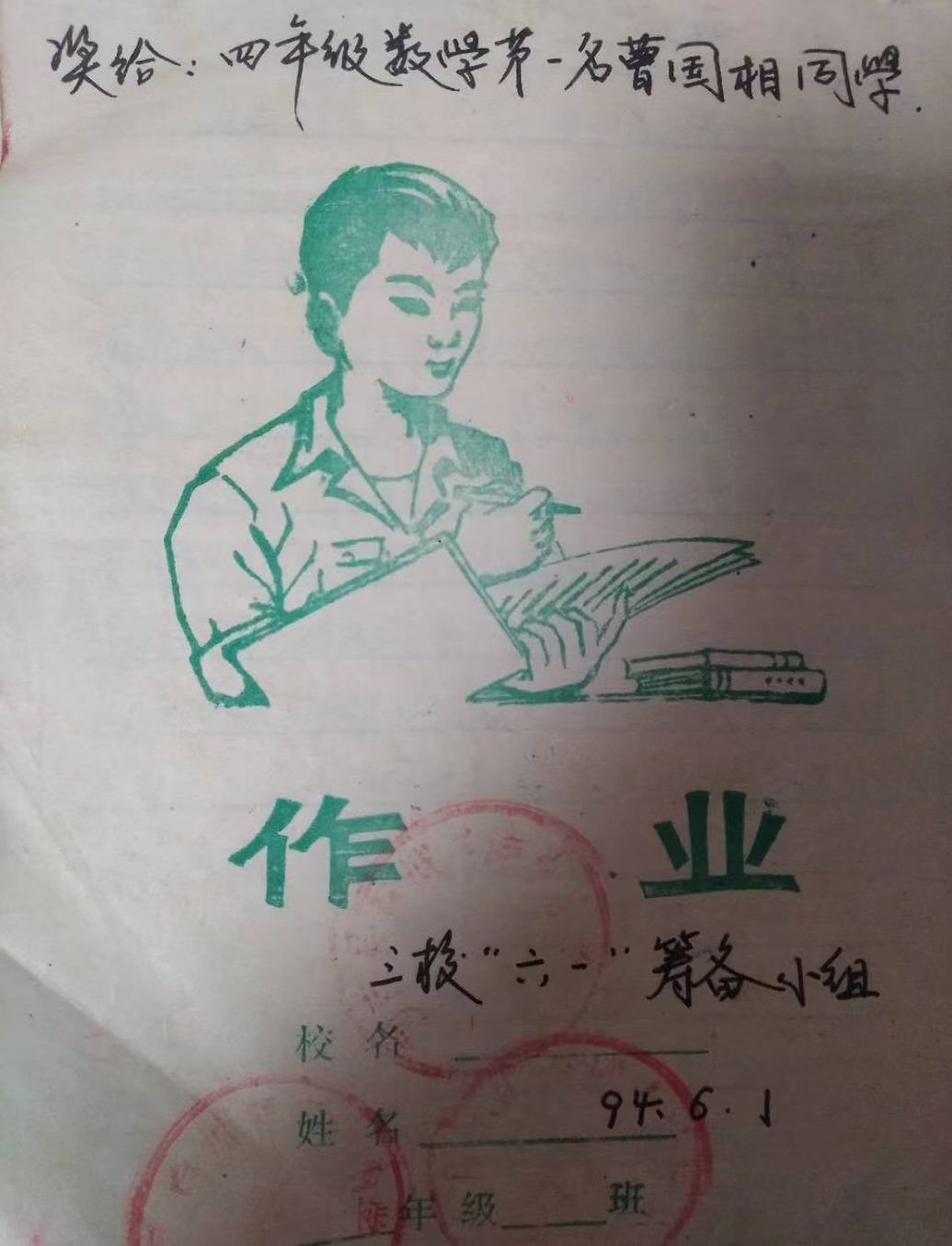 曹國(guó)相小學(xué)三年級(jí)時(shí)被老師獎(jiǎng)勵(lì)的本子,他很珍惜。
