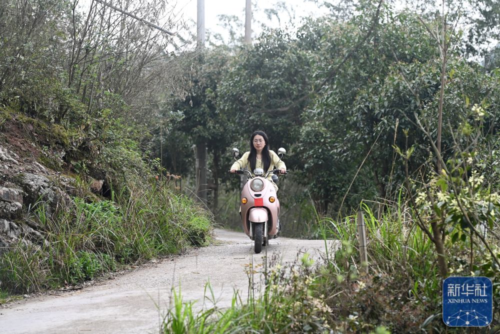 在廣西灌陽縣洞井瑤族鄉(xiāng)野豬殿村,“95后”老師趙艷騎著電動自行車從學(xué)校回家(2024年3月27日攝)。
