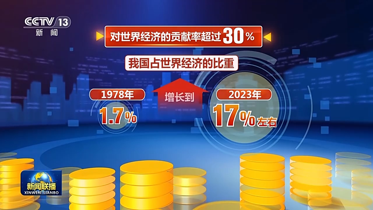 我國占世界經(jīng)濟(jì)的比重,從有數(shù)據(jù)統(tǒng)計(jì)以來的1978年的1.7%,增長到2023年的17%左右,對世界經(jīng)濟(jì)的貢獻(xiàn)率超過30%。
