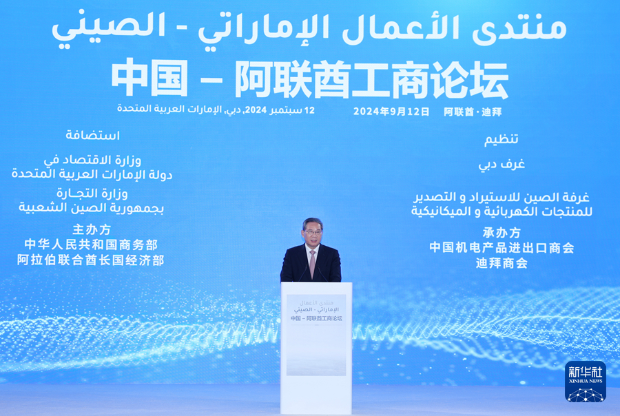 當?shù)貢r間9月12日下午,國務(wù)院總理李強在迪拜出席中國-阿聯(lián)酋工商論壇并致辭。