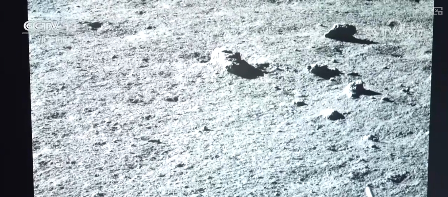 這是石塊,這是一個比較平坦的地方,有一些山丘,前面有一些撞擊坑。這個撞擊坑比較深一點(diǎn),什么時候人上去就好了,撿這么大一塊石頭下來。