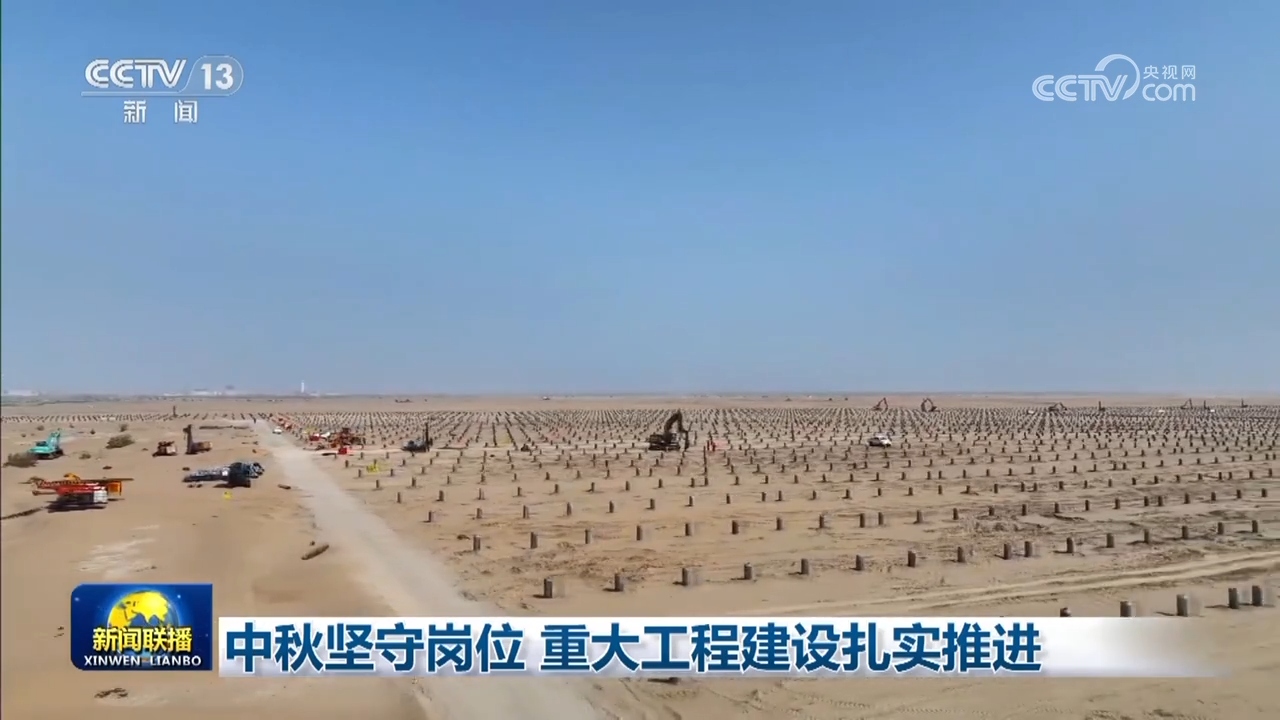 這個(gè)中秋假期,在塔克拉瑪干沙漠腹地,上千名施工人員沒有休息,加快建設(shè)萬(wàn)畝光伏治沙項(xiàng)目,他們將用光伏板鋪滿3285個(gè)足球場(chǎng)大小的沙丘,年底建成后,將為周邊化工產(chǎn)業(yè)群提供每年21億度的清潔電能。