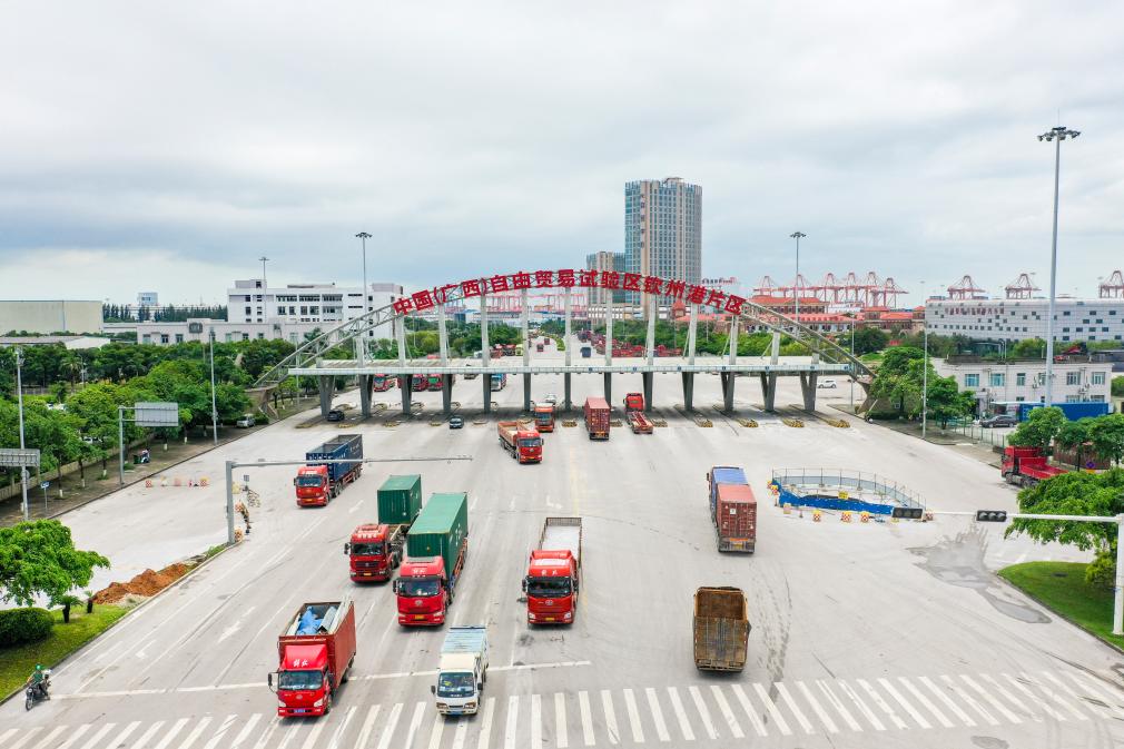 中國(guó)(廣西)自由貿(mào)易試驗(yàn)區(qū)欽州港片區(qū)(2024年5月20日攝,無(wú)人機(jī)照片)。新華社記者 曹祎銘 攝