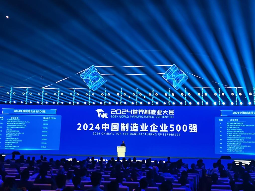9月20日在安徽省合肥市召開(kāi)的2024世界制造業(yè)大會(huì)上,“2024中國(guó)制造業(yè)企業(yè)500強(qiáng)”榜單發(fā)布。新華社記者 胡銳 攝