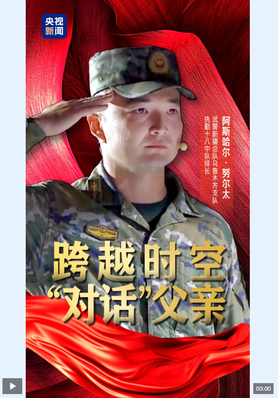 21日晚《把青春華章寫在祖國大地上》大思政課網(wǎng)絡(luò)主題活動現(xiàn)場,投筆從戎的南開學(xué)子阿斯哈爾 · 努爾太,通過AI技術(shù)穿越時空與父親對話。阿斯哈爾獻給父親的一個軍禮,令無數(shù)人動容。