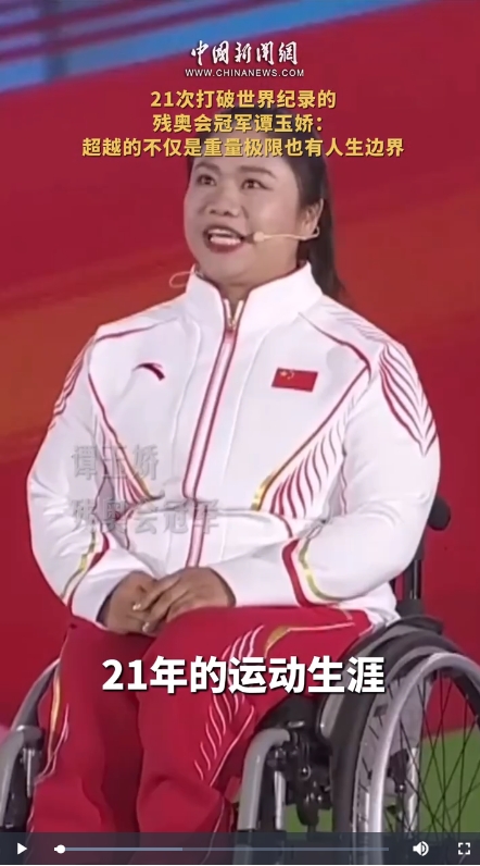 1990年出生的譚玉嬌7歲時(shí)因骨髓炎導(dǎo)致右腿殘疾。如今,她拿到了43枚金牌,21次打破世界紀(jì)錄。一次次超越重量極限的她,也在超越著她人生的邊界。譚玉嬌成為中國首位國際殘奧委會運(yùn)動員委員會委員,在巴黎殘奧會閉幕式上留下了屬于中國的獨(dú)特印跡。