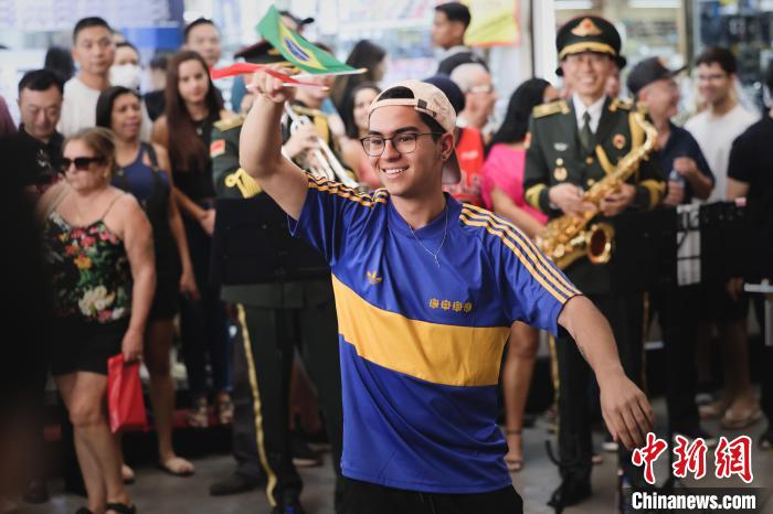 當(dāng)《巴西水彩畫》《依帕內(nèi)瑪?shù)呐ⅰ返劝臀鳟?dāng)?shù)囟炷茉數(shù)臉非懫饡r(shí),現(xiàn)場(chǎng)氛圍掀起一個(gè)高潮,熱情奔放的巴西民眾紛紛走進(jìn)“舞臺(tái)”中央,跟著節(jié)奏扭起了巴西特色的桑巴舞,還有人情不自禁地哼起了歌曲。