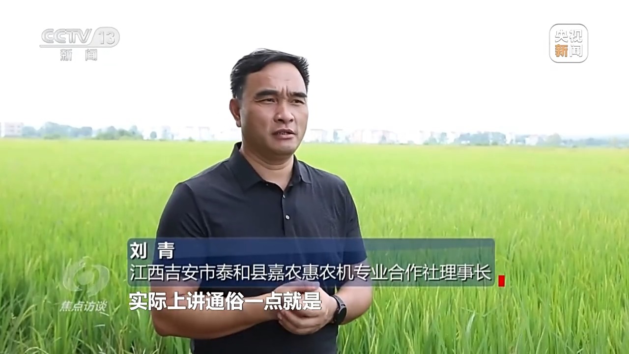 江西吉安市泰和縣嘉農(nóng)惠農(nóng)機專業(yè)合作社理事長 劉青:實際上我們就是農(nóng)民的“田間保姆”,農(nóng)民雇傭我們,我們做他的保姆,為他田里面的稻子種植整個過程,做一個保姆式服務。
