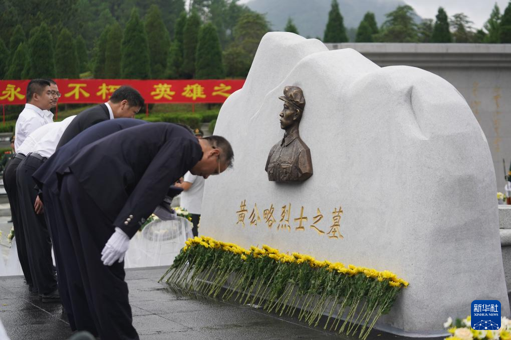 9月25日,全體人員向黃公略烈士脫帽默哀。新華社記者 周密 攝