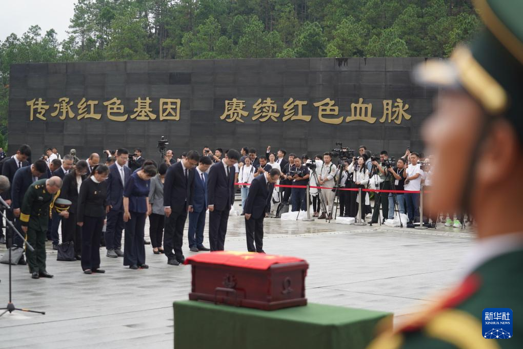 9月25日,禮兵抬黃公略烈士棺槨至烈士墓穴。新華社記者 周密 攝