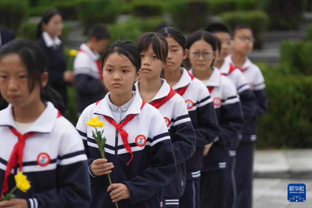 9月25日,兒童向烈士墓獻(xiàn)花。新華社記者 周密 攝
