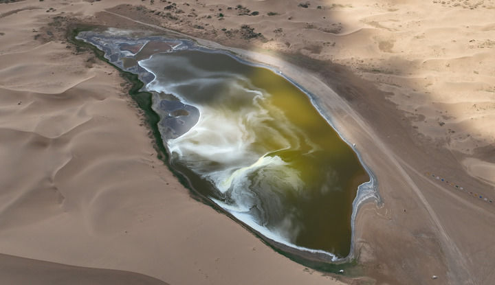 2024年7月31日拍攝的巴丹吉林沙漠中的南海子(無(wú)人機(jī)照片)。