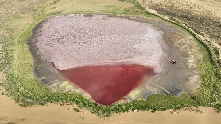 2024年7月30日拍攝的巴丹吉林沙漠中的紅海子(無(wú)人機(jī)照片)。