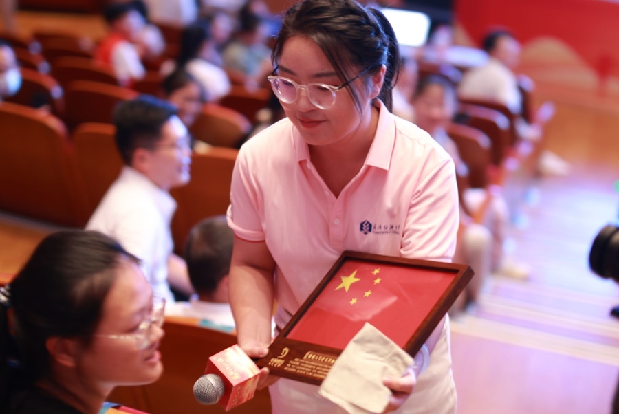 武漢紡織大學月面國旗研制團隊的一系列創(chuàng)新成果,生動詮釋了“追逐夢想、勇于探索、協(xié)同攻堅、合作共贏”的探月精神。正是這種迎難而上、勇攀高峰的精神,激勵著我國探月工程不斷穩(wěn)步向前,同時也深深激勵著現(xiàn)場學子:創(chuàng)新無止境!唯有奮斗無悔青春!