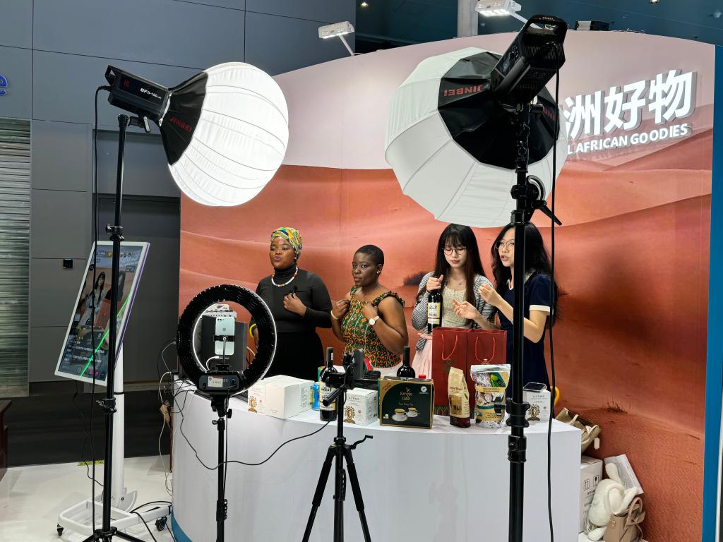 南非的紅酒、埃塞俄比亞的咖啡、肯尼亞的紅茶……在“智慧非洲”展臺一角,來自南非和中國的4名大學(xué)生變身帶貨主播,通過TikTok和抖音平臺將各類“非洲好物”推廣至海內(nèi)外。