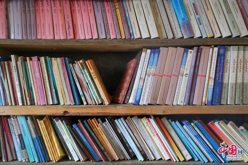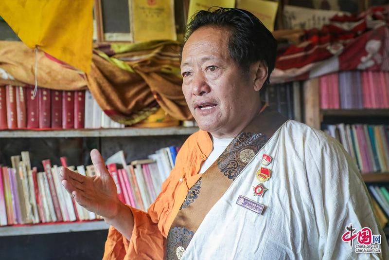 扎西達杰介紹藏書。中國網記者鄭偉攝